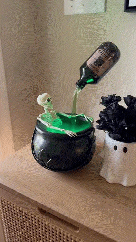 【Enchanted Family Tradition with Reusable Cauldron】Bring your Halloween decor indoor to life with the witches skeleton cauldron! This spooky cauldron emits green smoke, creating a magical and eerie atmosphere.